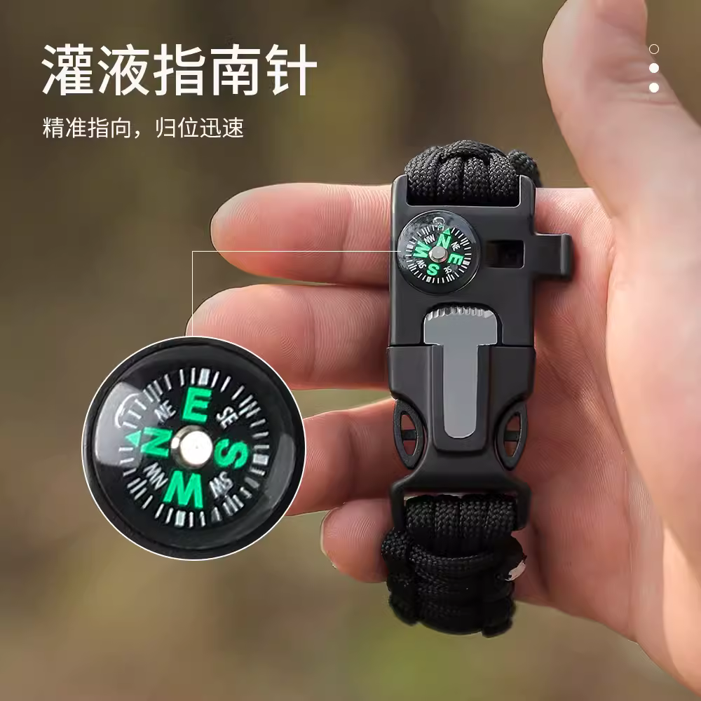 多功能户外伞绳手链打火石指南针