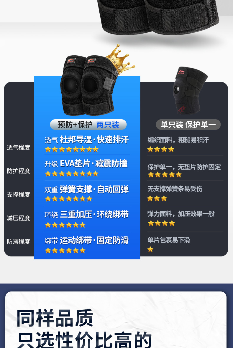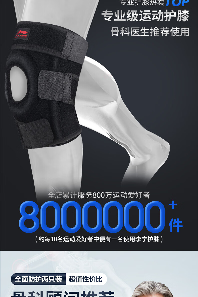 李宁护膝运动半月板跑步篮球专用男女保暖膝盖护具髌骨羽毛球足球
